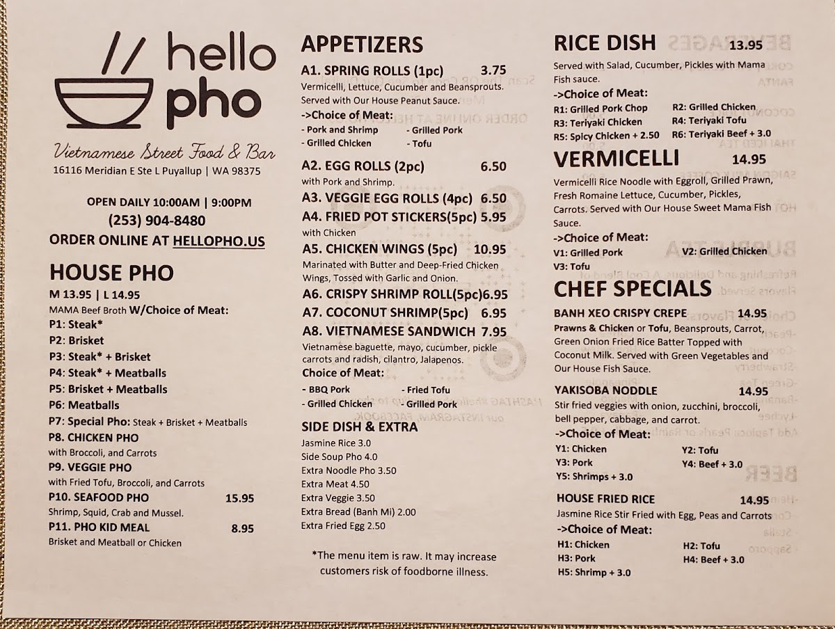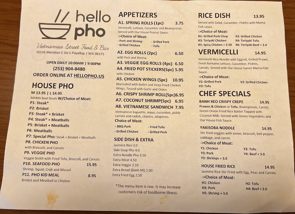Hello Pho Menu